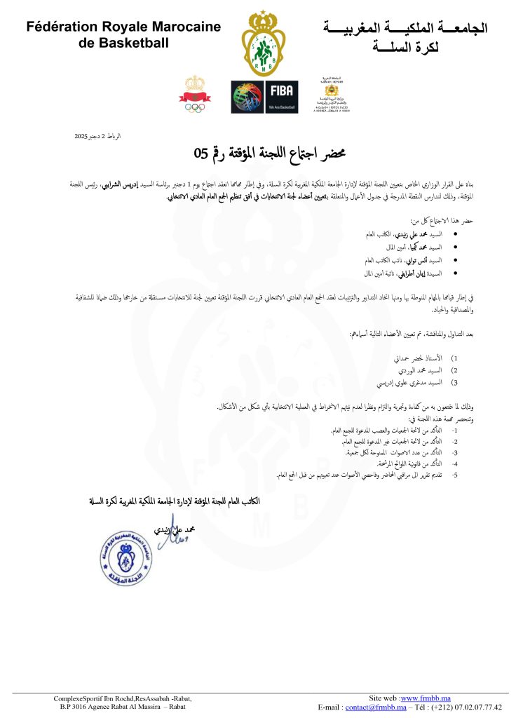 يتقدم السيد إدريس الشرايبي رئيس اللجنة الموقتة لادارة الجامعة الملكية المغربية لكرة السلة نيابة...