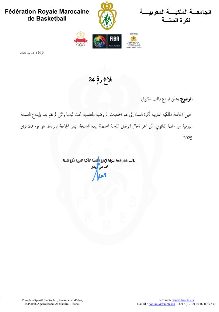 بلاغ رقم 24 بشأن إيداع الملف القانوني